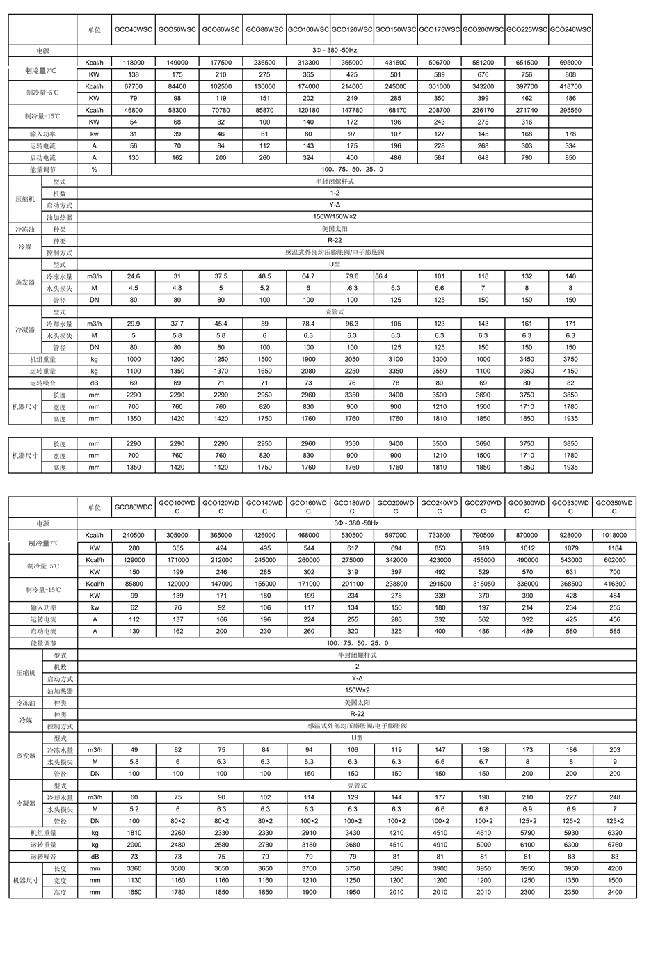 水冷螺杆冷水机产品技术参数: